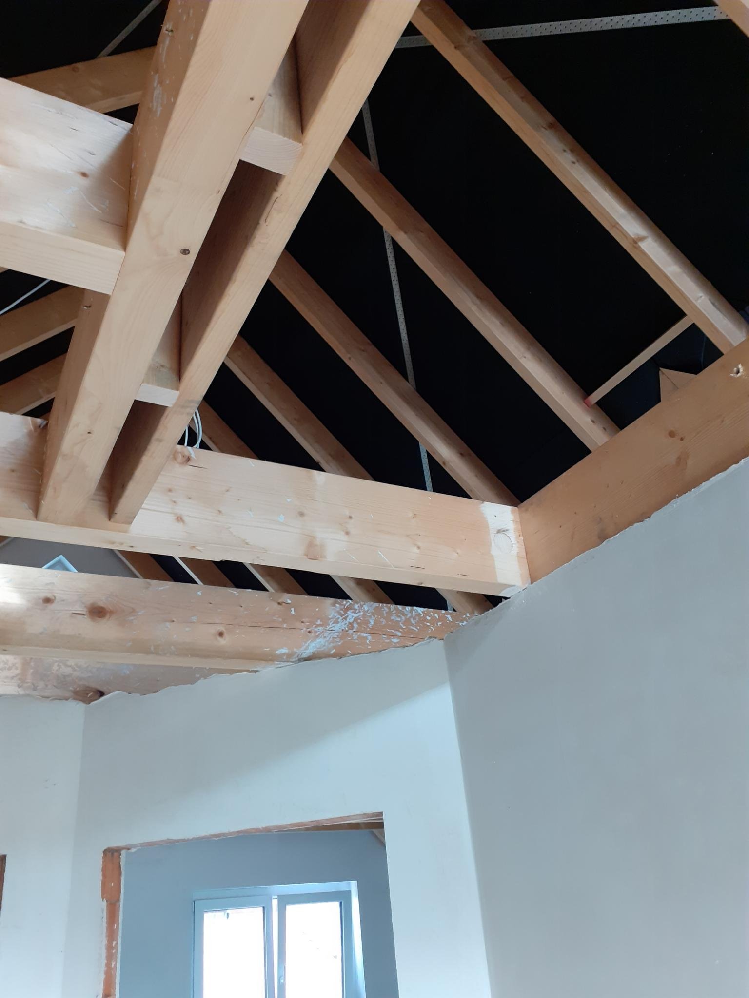 Vergangene Woche stellte jemand von unserer Treppenfirma fest, dass der Dachbalken nicht auf der Wand liegt. Selten, aber doch relativ unkompliziert. Kleine Fehlkonstruktionen können halt mal passieren.