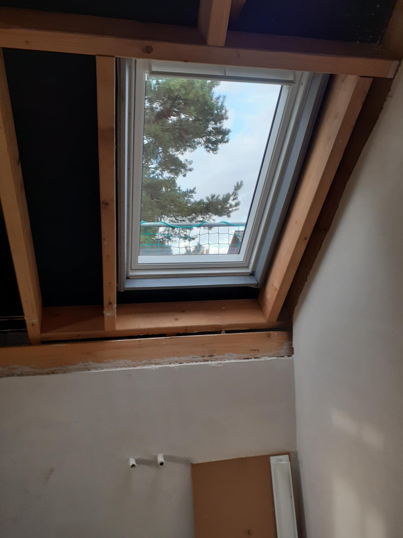 Erfreulicherweise wurde heute direkt das Dachfenster mit eingebaut. Ich freue mich schon auf das erste Bad, fast unter freiem Sternenhimmel. 😀