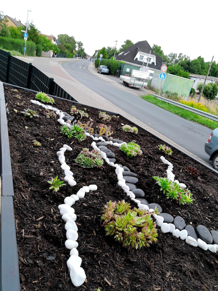 Nach rund 4 Wochen bei extremster Hitze im kleinen Blumentopf, erfreuen sich nun die kleinen Sukkulenten endlich auf ihre neue Heimat. Ein schöner fester Standort auf dem Mülltonnendach.