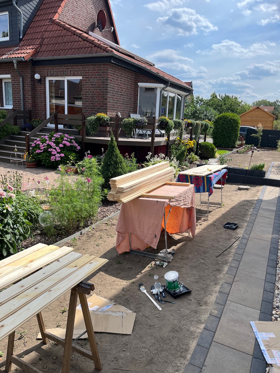 In dieser Woche haben wir ordentlich geschwitzt, gehämmert, geschaufelt, zertrümmert, lasiert und lackiert.