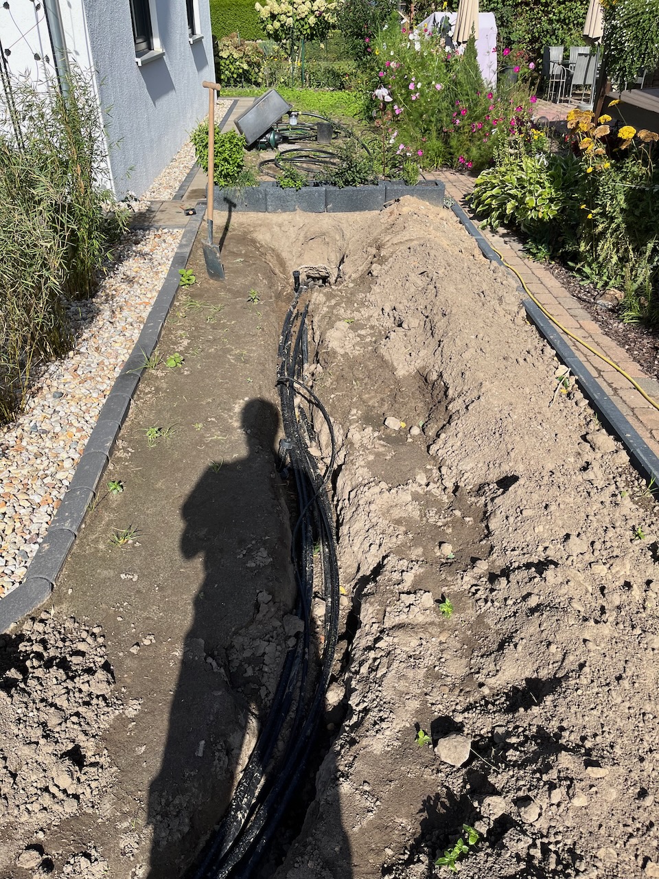 Sören hatte Mitte August die Betonfundamente für das Carport angemischt. Diese zwei Löcher umfassen 1,5 Paletten (54 Säcke á 25 kg). Da braucht man wirklich kein Fitnesstudio mehr.