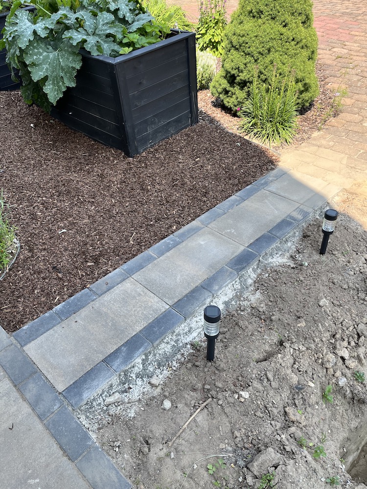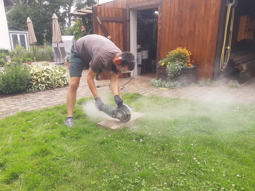 Zwei Baumarktbesuche an einem Tag – solche Probleme kennen Bauherren. Der Juli hat gerade begonnen und Sören baut einen kleinen Gehweg zu unseren Nachbarn. So können die Enkelkinder später schnell zu den Großeltern und im Sandkasten spielen. Wir freuen uns, wenn dieser Tag kommt.